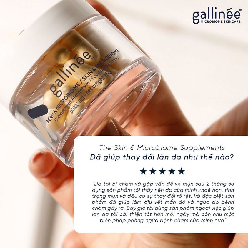 Bởi triết lý đó, Gallinée chính là “chìa khóa” duy trì vẻ đẹp bền vũng của da bằng cách “thấu hiểu” được tầm quan trọng của hàng rào bảo vệ da, hệ vi sinh trên da nên các công thức có trong sản phẩm Gallinée đều tập trung hoàn toàn vào Probiotics (lợi khuẩn), Prebiotics (thức ăn nuôi sống lợi khuẩn) và Postbiotics (môi trường cho lợi khuẩn phát triển) với mong muốn da phải được phục hồi toàn diện ở cấp độ tế bào chứ không phải chỉ tập trung vào điều trị nhất thời, kết quả sẽ bị hạn chế và tồn tại trong thời gian ngắn.